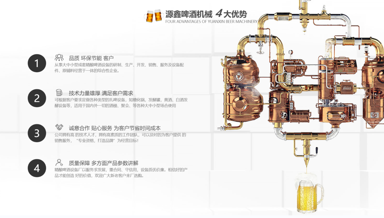 为了追求啤酒独特个性和地区特点的酿酒理念,从而促进餐厅的快速发展,因此我们使用自...